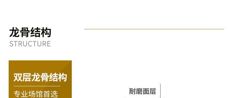 3、體育木地板因?yàn)閷儆陂L纖維,密度沿地板塊均勻排列,平均耐磨性好,使用壽命極長。